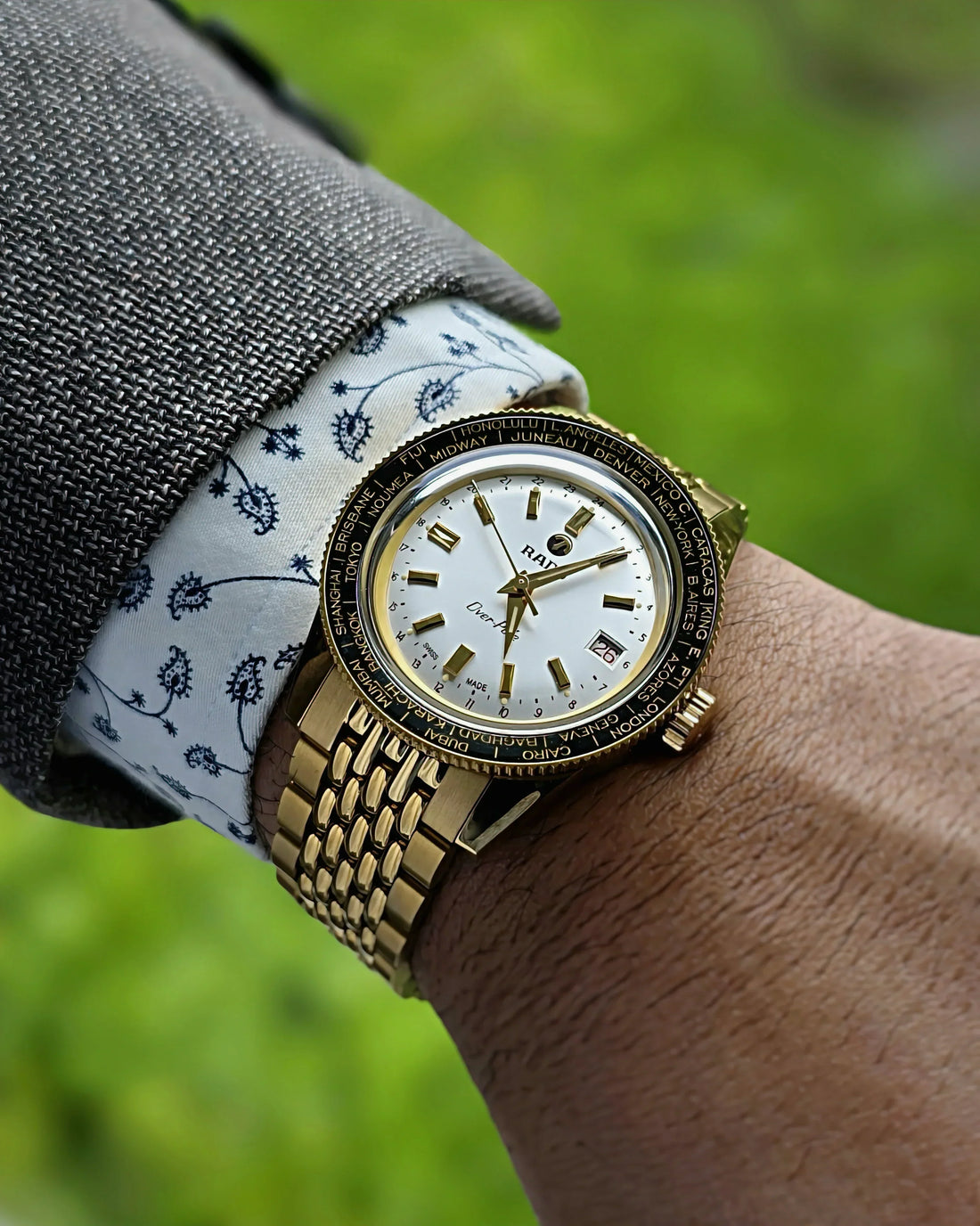 I’ve been enjoying some time with the new Rado Captain Cook OverPole, and here are a few thoughts from my week wearing it. First, the essentials: this latest version has been upsized from the 2022 model’s 37mm to a more contemporary 39mm diameter, 11mm thickness, and 46mm lug-to-lug. It’s also now PVD-coated in yellow gold, a bold departure from previous models.