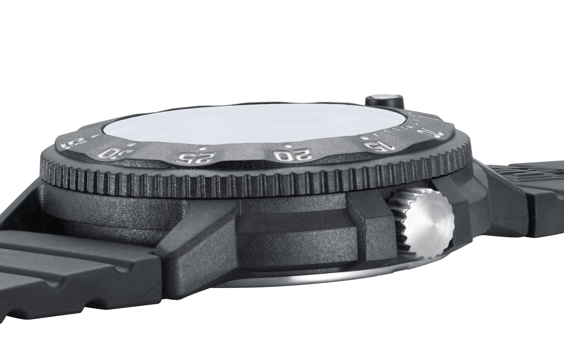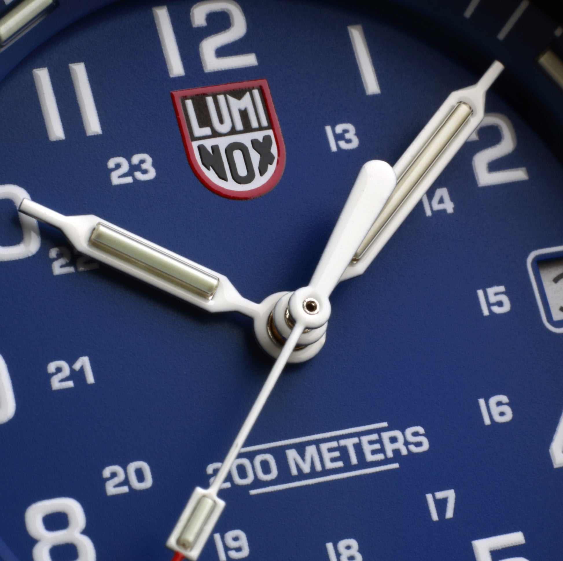 The blue Navy SEAL 3003 updates the original Navy SEAL timepiece that made Luminox famous. While maintaining the 43mm size and distinctive narrow dial aperture, this watch also features a screw-down case back and crown that are standard in today's waterproof Luminox timepieces.