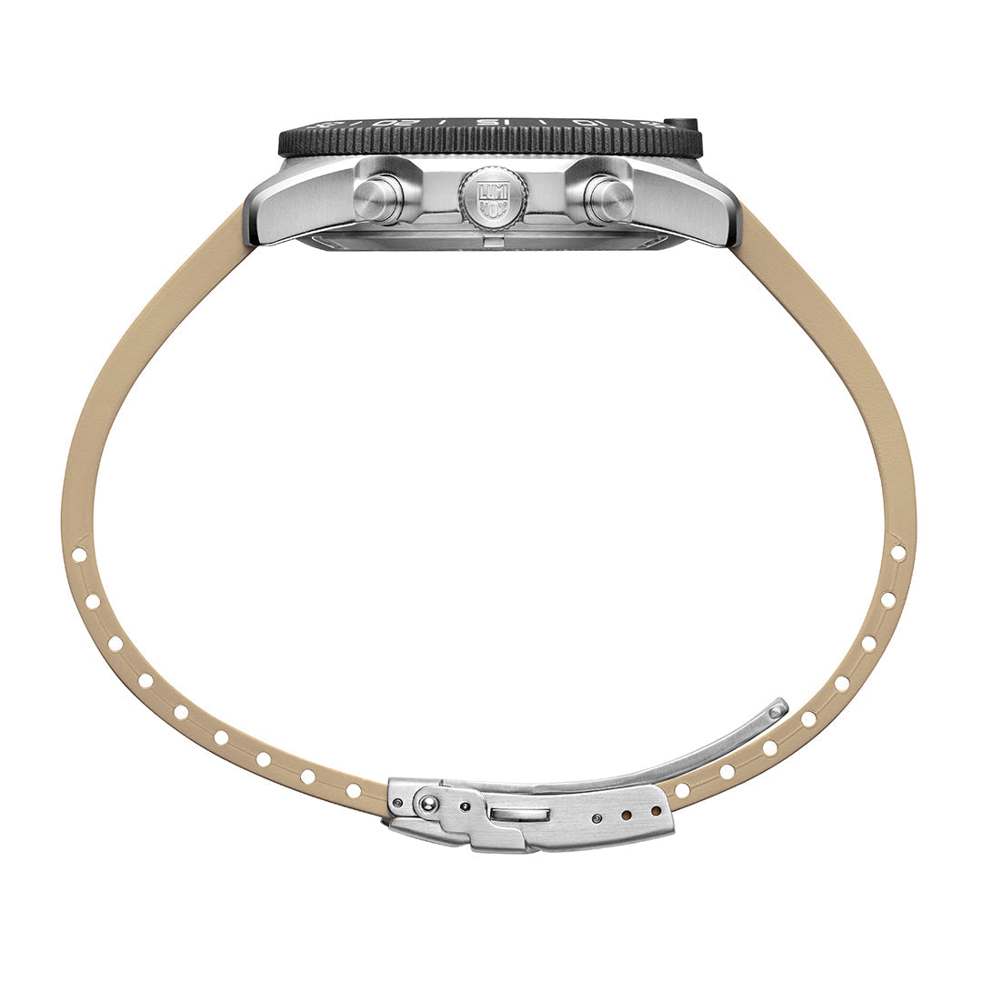 The Pacific Diver Chrono is a nice addition to the chronograph series. A stainless steel case, CARBONOX™ unidirectional rotating bezel, a must-have for every diver and a custom-fit sand rubber strap - for an easy and perfect fit.