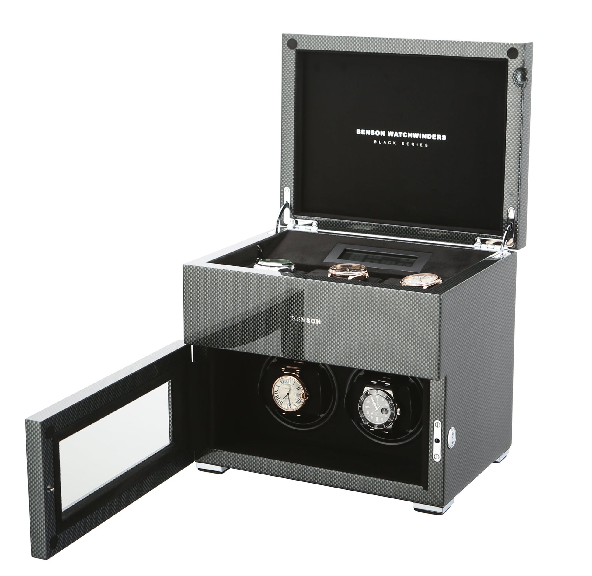 The new Benson Black Series represents the most luxurious line of watch winders Benson offers. This product combines the newest in watch winder technology with a stylish design and the highest quality finish. With extra storage for other watches, LED lighting, a soft-close cover, and an innovative touch screen, the Black Series offers both functionality and a quality design. Benson’s lacquered finish ensures a beautiful, rich color no matter which watch winder catches your fancy.