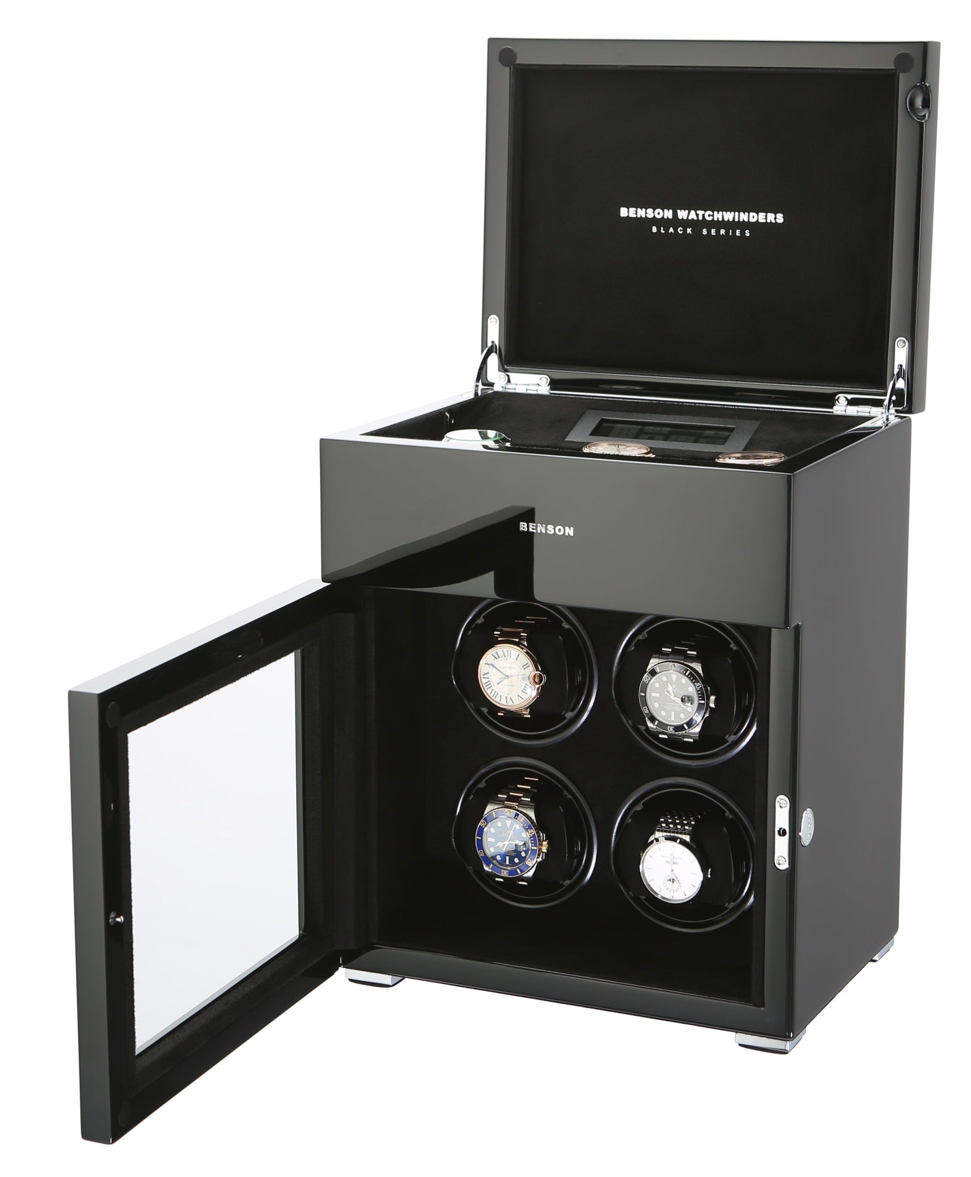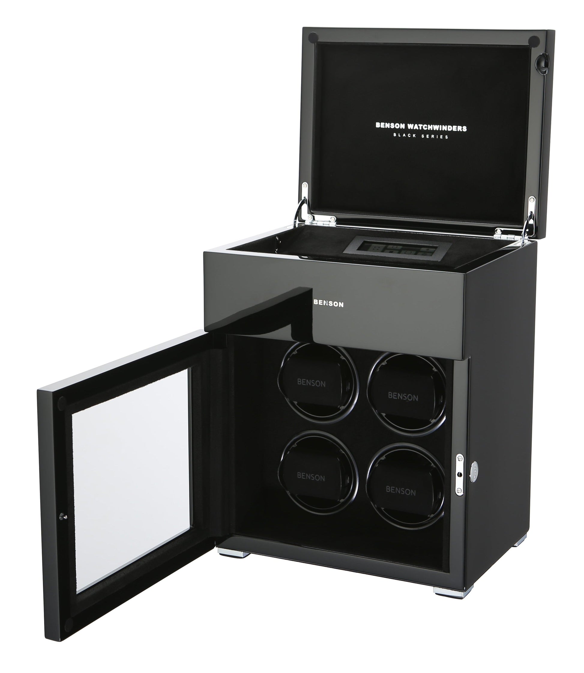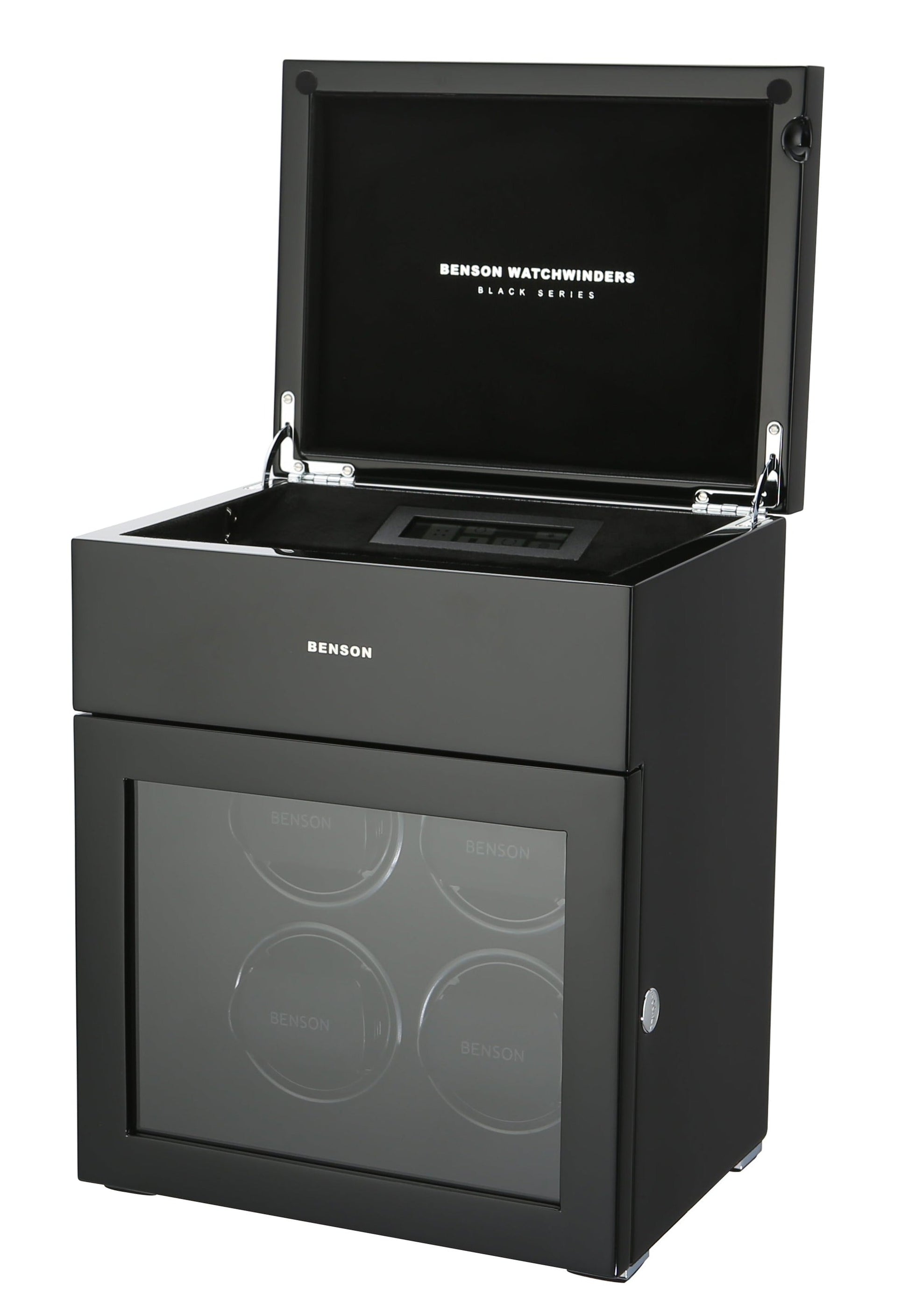 The new Benson Black Series represents the most luxurious line of watch winders Benson offers. This product combines the newest in watch winder technology with a stylish design and the highest quality finish. With extra storage for other watches, LED lighting, a soft-close cover, and an innovative touch screen, the Black Series offers both functionality and a quality design. Benson’s lacquered finish ensures a beautiful, rich color no matter which watch winder catches your fancy.