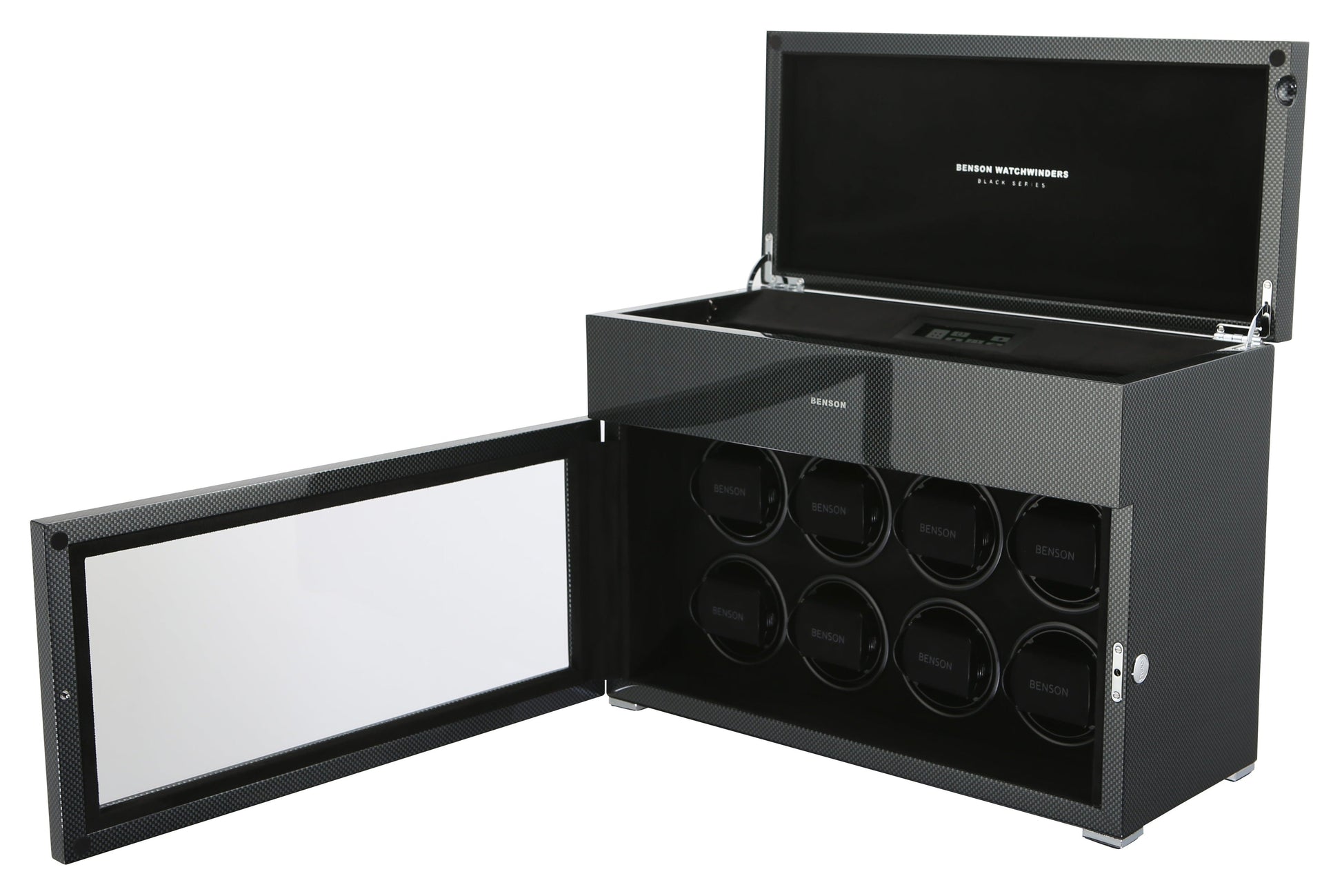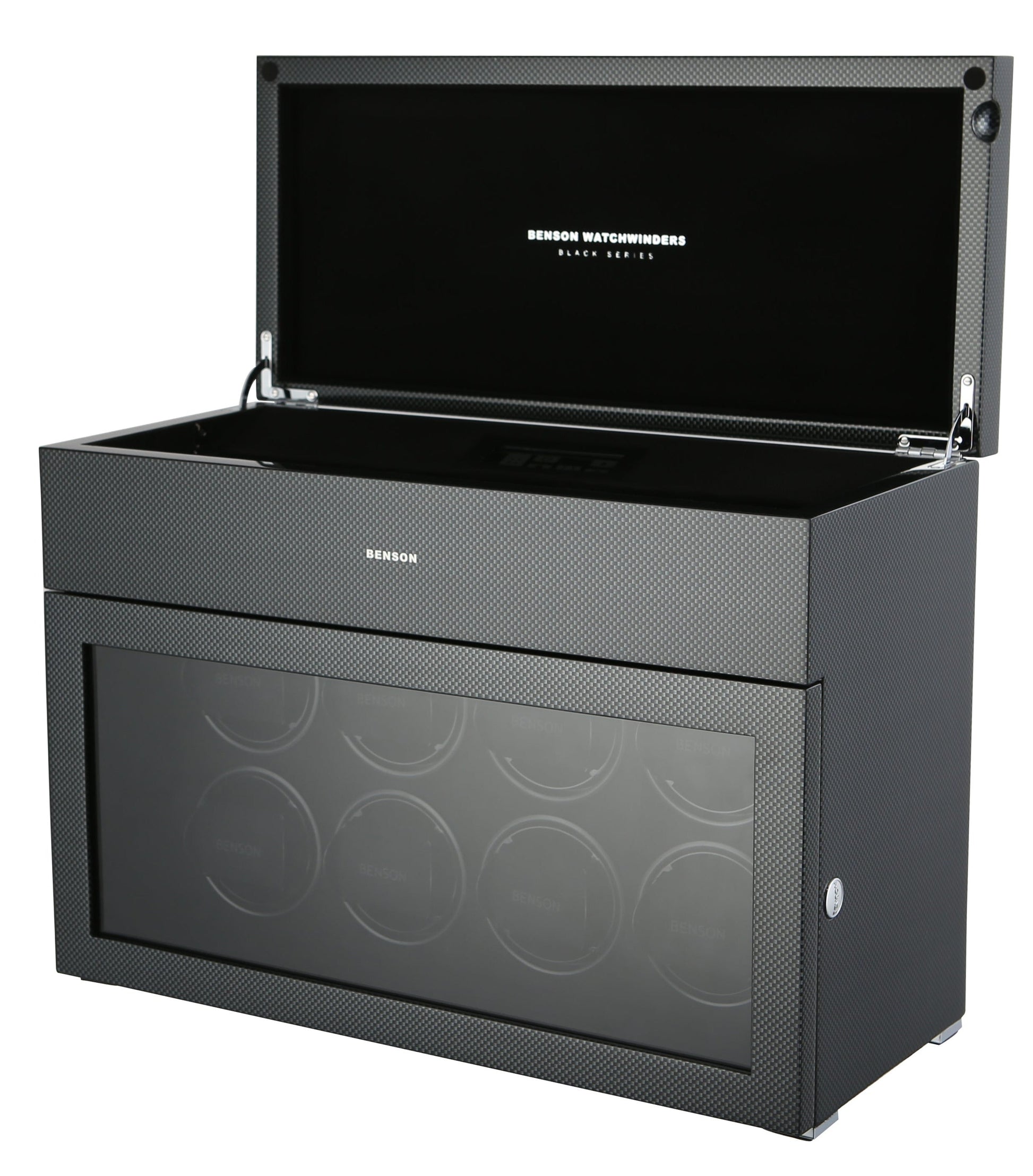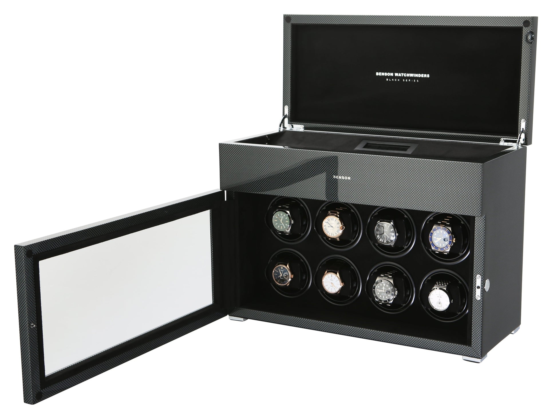 The new Benson Black Series represents the most luxurious line of watch winders Benson offers. This product combines the newest in watch winder technology with a stylish design and the highest quality finish. With extra storage for other watches, LED lighting, a soft-close cover, and an innovative touch screen, the Black Series offers both functionality and a quality design. Benson’s lacquered finish ensures a beautiful, rich color no matter which watch winder catches your fancy.