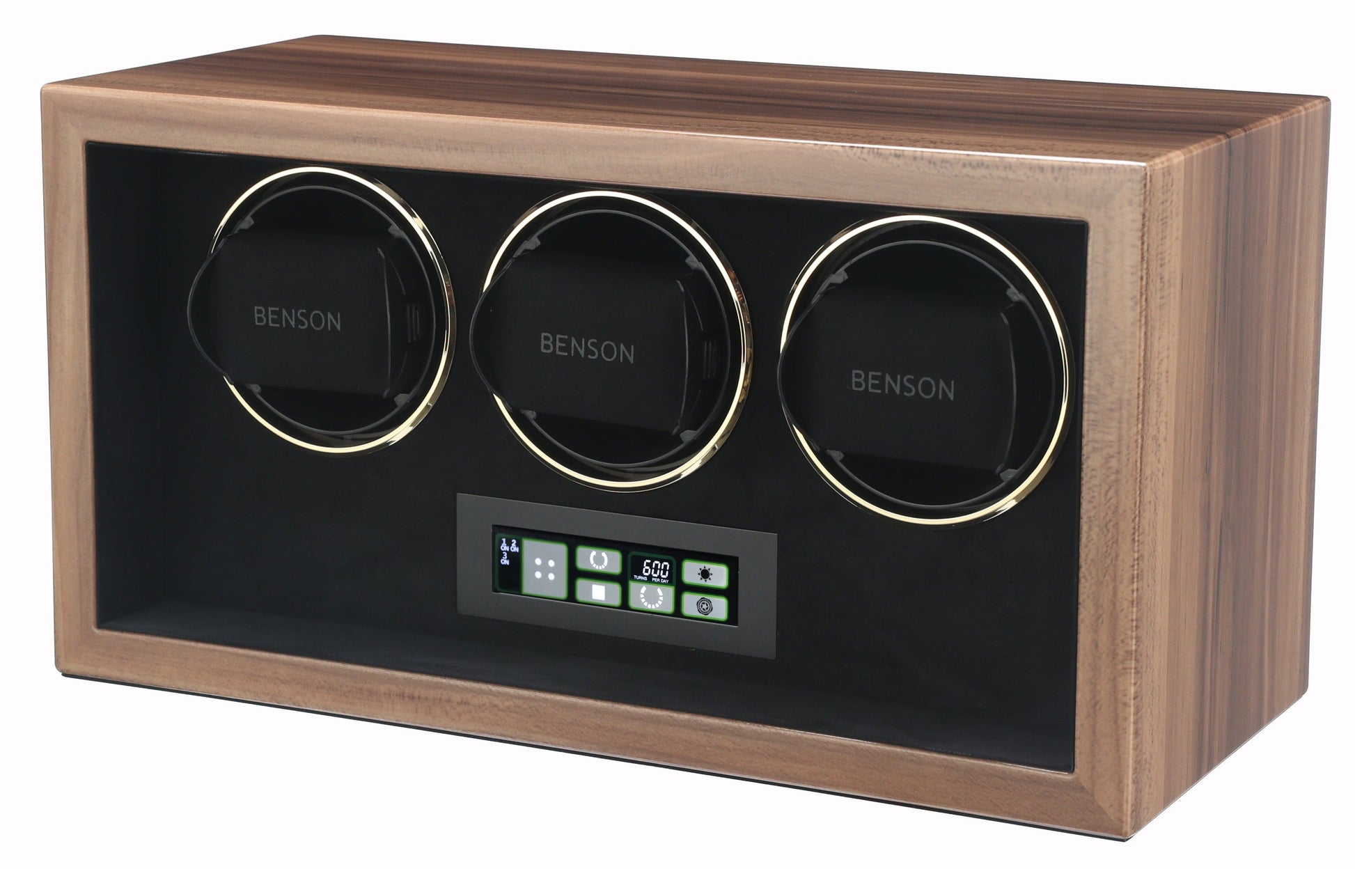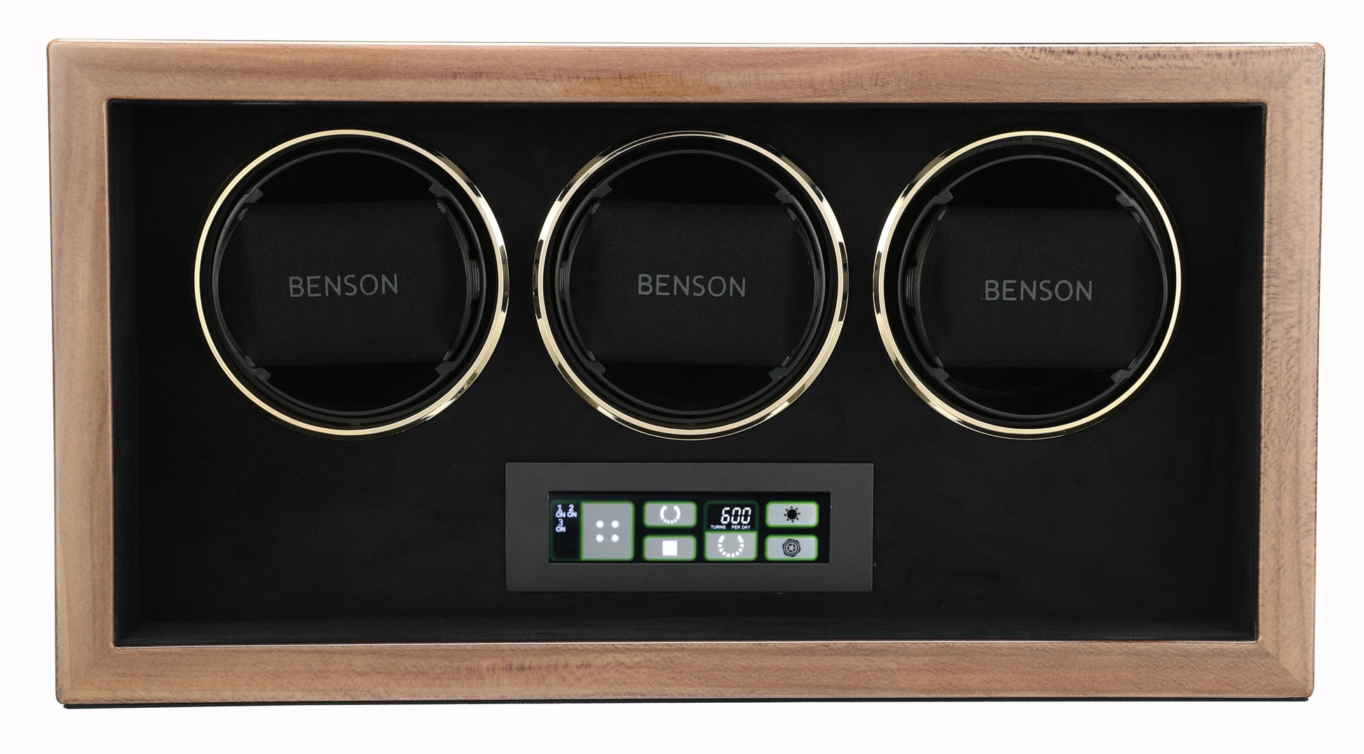 The new generation Benson Compact watch winders do have a Japanese motor which guarantees optimal winding and a high reliability. The adjustable rotation direction, TPD (turns per day) and LED light which you can set via the touchscreen makes this watch winder very functional. The Benson Compact watch winders are suitable to be placed in your living room or office. Your watches will be wound up nicely by this Compact series. The level of energy is preserved and you can wear your watch any moment you wish without winding it up or change the indication of time. The watch winder can be connected with the adapter. In short, our watch winders are a first class accessory for an automatic watch.