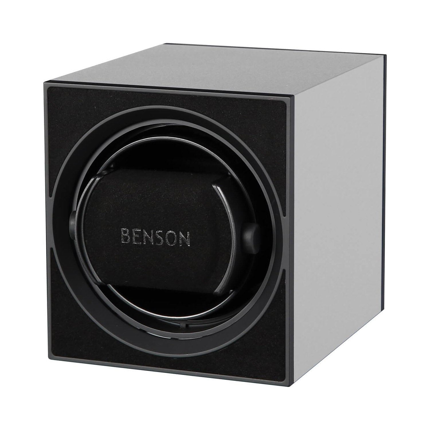 Benson proudly presents its latest generation of Compact Aluminum watch winders. This new series of watch winders has a modern design, is compact and contains excellent features. These new Benson Compact Aluminum watch winders provide any automatic watch, regardless of brand or model, with sufficient energy completely safely and easily so that the watch is immediately ready to wear. The advantages of the Benson Compact Aluminum watch winders are the excellent price/quality ratio, high functionality and beautiful finish. Each model can be fully configured in terms of direction of rotation and number of revolutions per day. In addition, an important advantage is that this Benson Compact Aluminum 1 Black watch winder functions for +- 6-9 months on one set of batteries. The flexible watch holder ensures that large but also smaller watches click into place in the watch winder for optimal safety of the watch. The special LED lighting ensures that you can also see