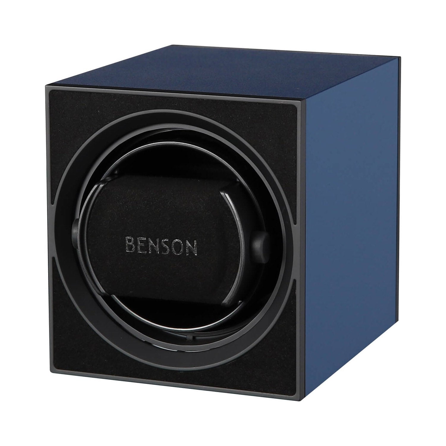Benson proudly presents its latest generation of Compact Aluminum watch winders. This new series of watch winders has a modern design, is compact and contains excellent features. These new Benson Compact Aluminum watch winders provide any automatic watch, regardless of brand or model, with sufficient energy completely safely and easily so that the watch is immediately ready to wear. The advantages of the Benson Compact Aluminum watch winders are the excellent price/quality ratio, high functionality and beautiful finish. Each model can be fully configured in terms of direction of rotation and number of revolutions per day. In addition, an important advantage is that this Benson Compact Aluminum 1 Black watch winder functions for +- 6-9 months on one set of batteries. The flexible watch holder ensures that large but also smaller watches click into place in the watch winder for optimal safety of the watch. The special LED lighting ensures that you can also see