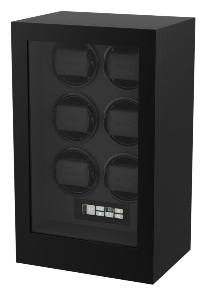 The Dutch watch winder brand Benson presents its latest Smart-Tech II models. These models are characterized by excellent quality, good functionality and a beautiful finish. The Benson Smart-Tech II 6.20.B watch winder is suitable for winding 6 automatic watches and has a storage drawer to store other watches and jewelry. Each rotor is individually adjustable in terms of direction of rotation and number of revolutions per day (TPD: turns per day). This makes the Benson Smart-Tech II 6.20.B watch winder suitable for any automatic watch, regardless of watch brand or model. The flexible watch holders, LED lighting and the handy touchscreen make this watch winder an excellent choice. This watch winder comes with a 2-year warranty, adapter and manual.