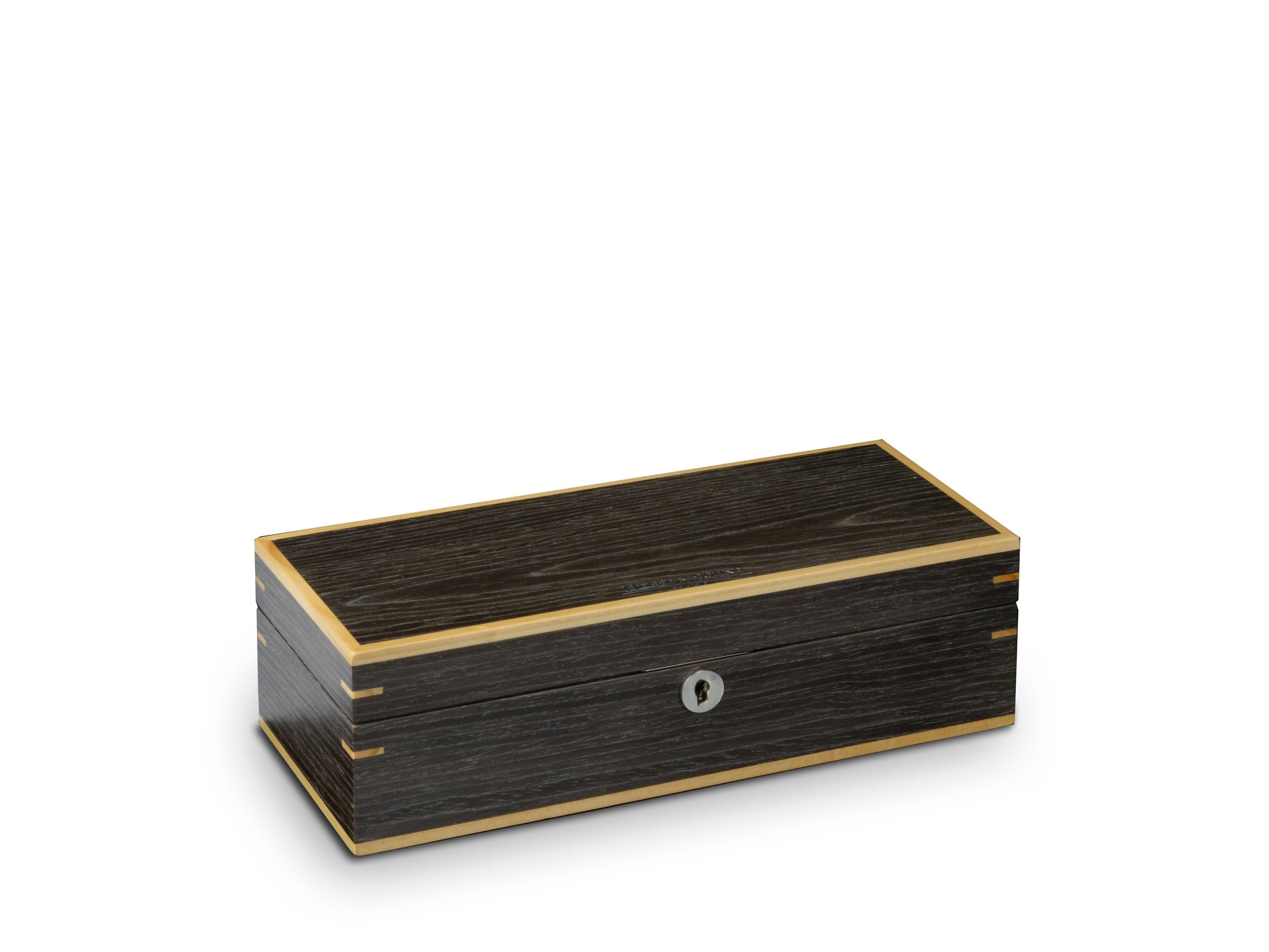 The elaborate bi-color finishes give the series an impressive visual depth that enriches any interior. Metal applications on the lock and hinge create elegant accents and form a stylish contrast to the satin lacquer finish of the box.