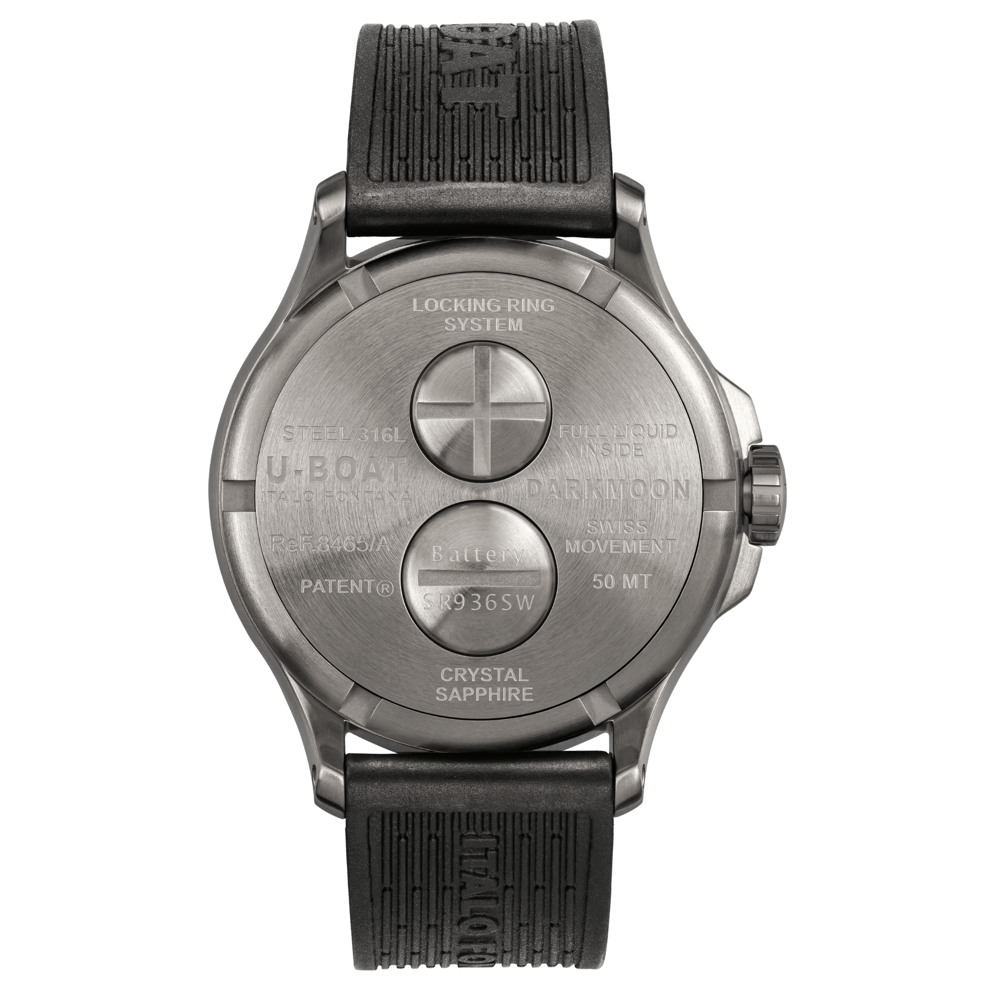 U-BOAT DARKMOON 44MM RED GLASS SS/RUBBER CODE 8465/B